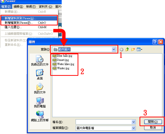 ■ 新增檔案到Picasa: |