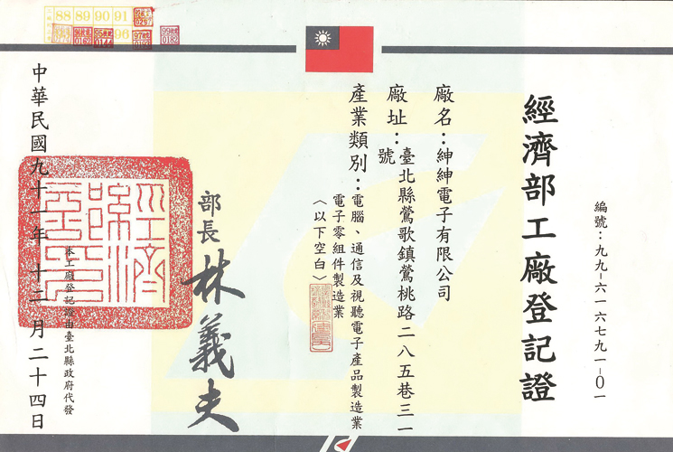 經濟部工廠登記證